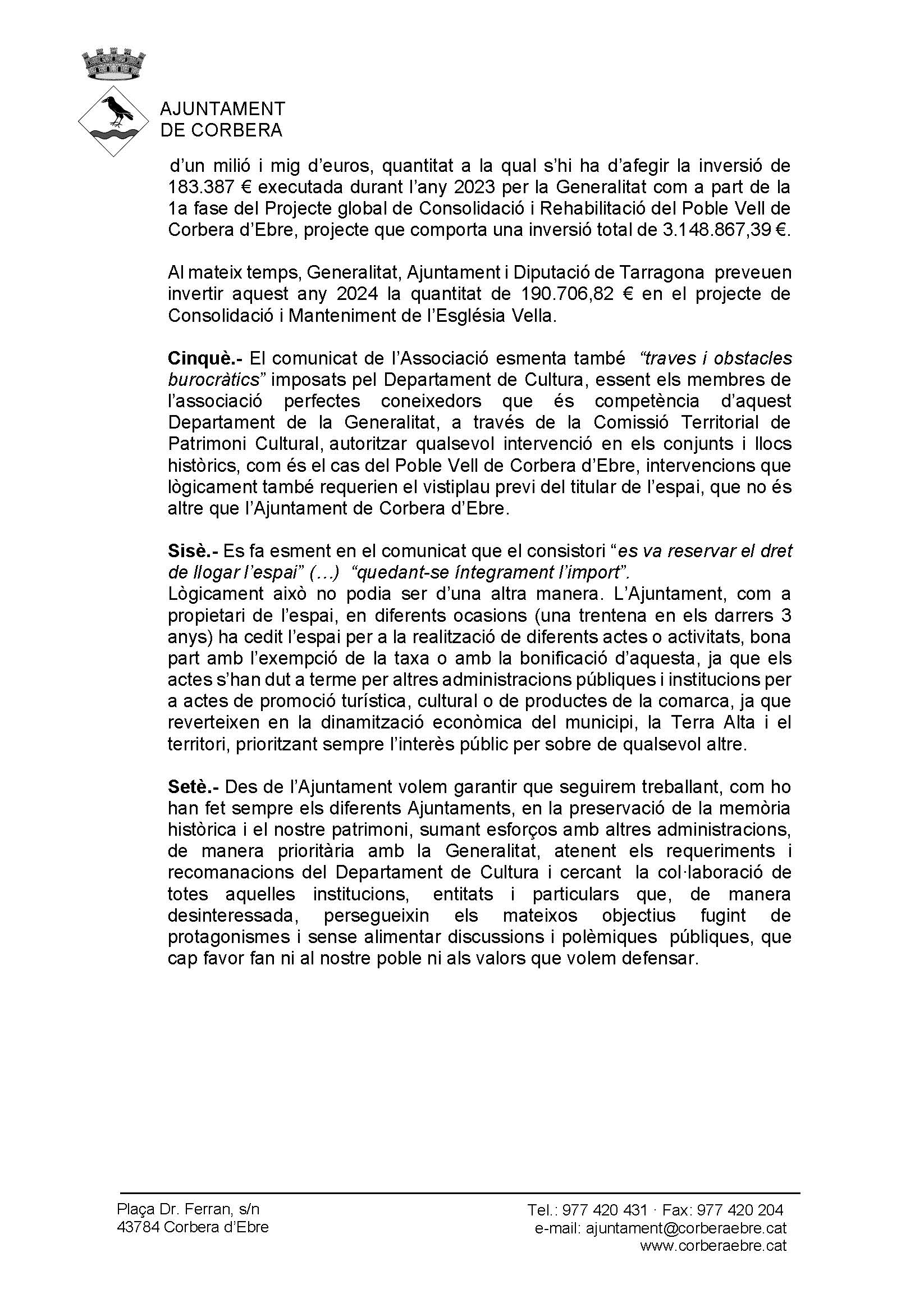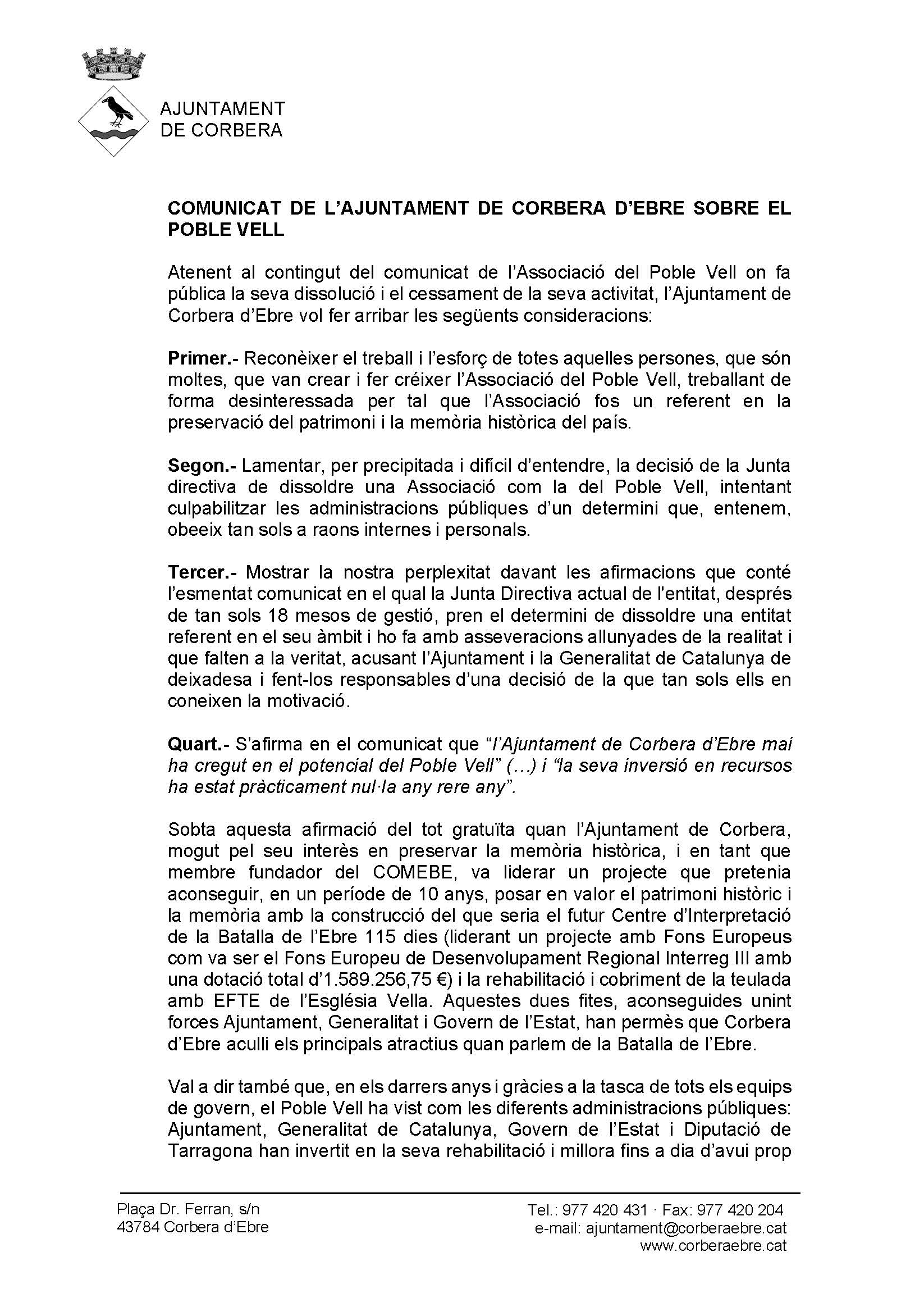 COMUNICAT DE L’AJUNTAMENT DE CORBERA D’EBRE SOBRE EL POBLE VELL Ajuntament Corbera d'Ebre2024-02-28T11:27:12+01:00